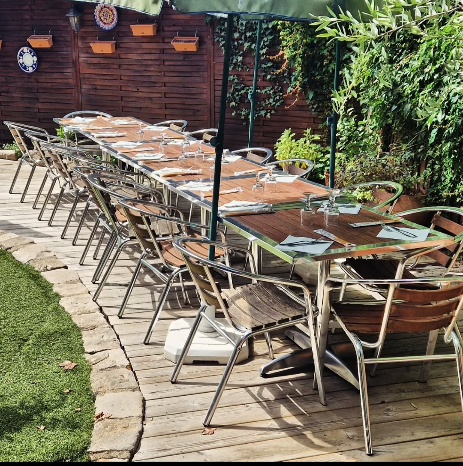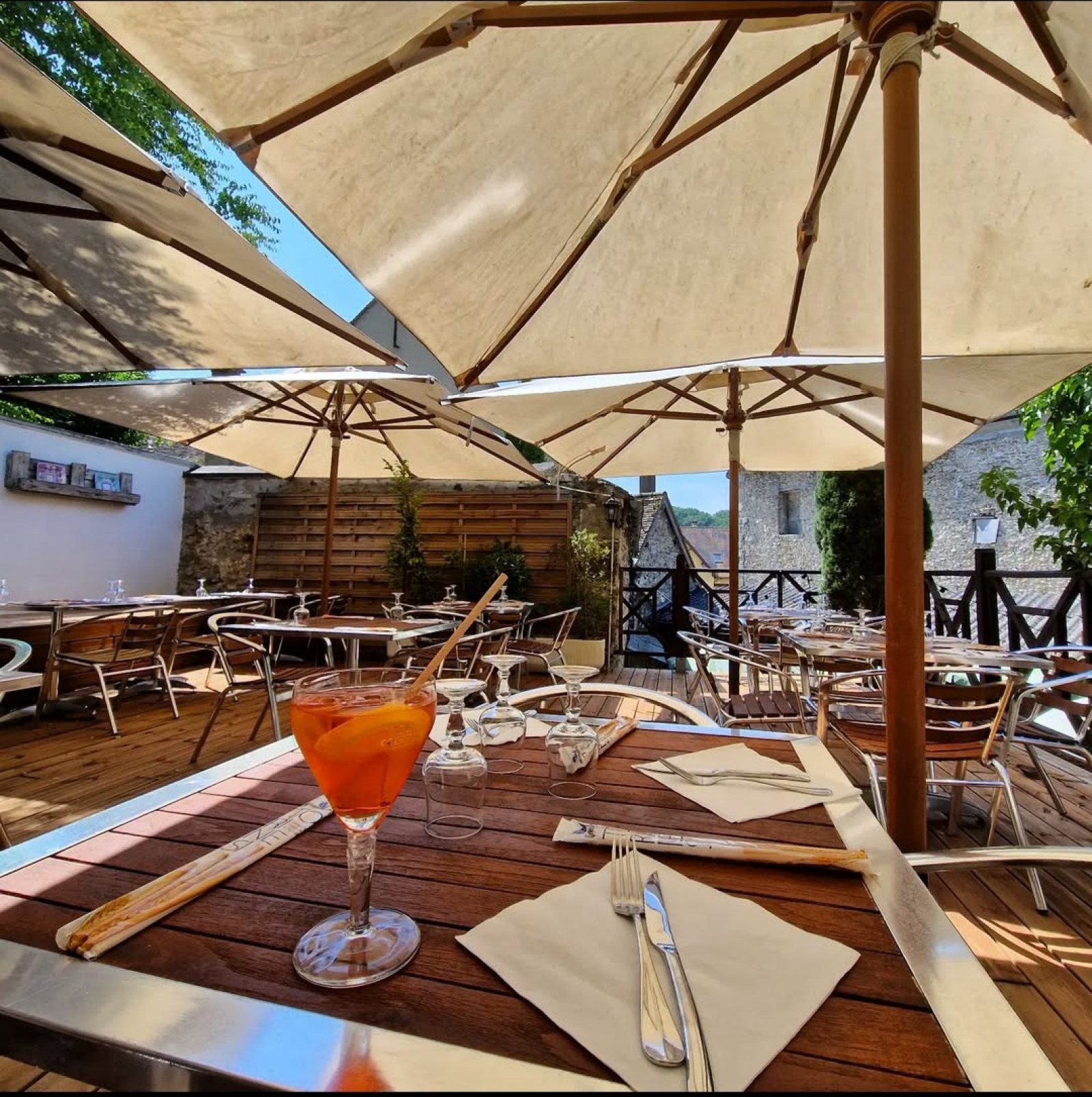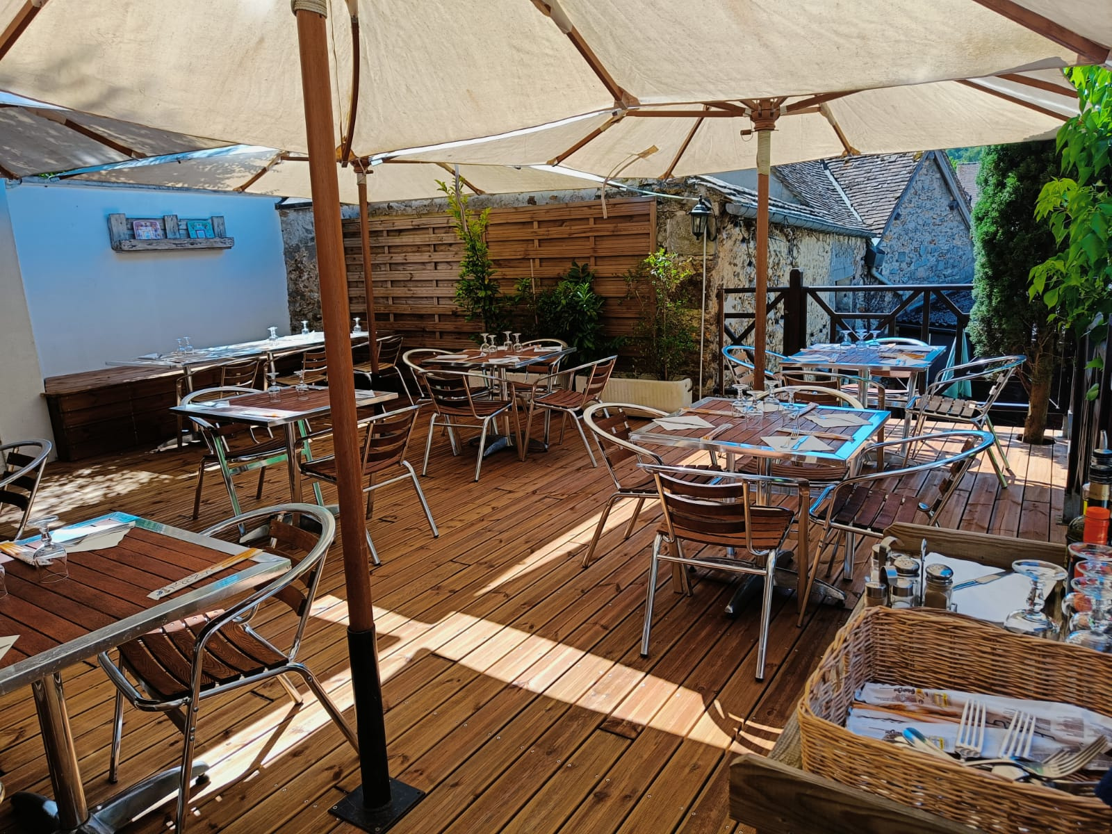 Une superbe terrasse de 75 m² sur deux niveaux, à la fois conviviale et intimiste, offrant une partie ensoleillée et une partie ombragée idéale pour les beaux jours (50 couverts supplémentaires).