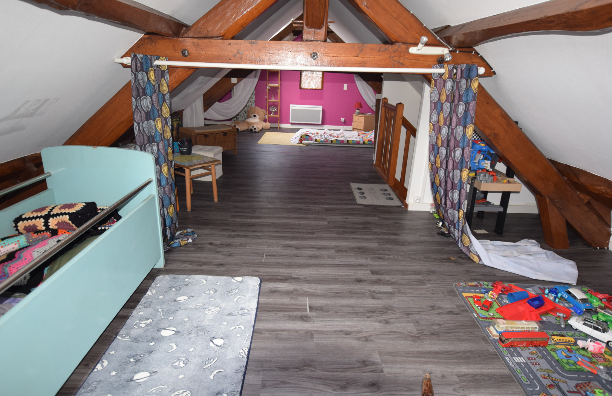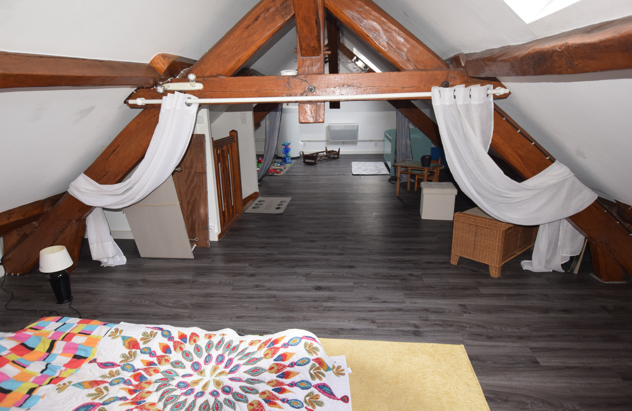 Auneau-Bleury-Saint-Symphorien (28700)Située à 15 mn de Rambouillet dans la commune de Saint-Symphorien, venez découvrir cette ancienne grange transformée en 2008 "sans extérieur". Elle ce compose au RDC d'un séjour ouvert sur cuisine, un WC et l'accès au garage. A l'étage un palier dessert un salon, 2 chambres, une SDB avec une douche, un WC séparé et un escalier pour accéder aux combles aménagés en chambre