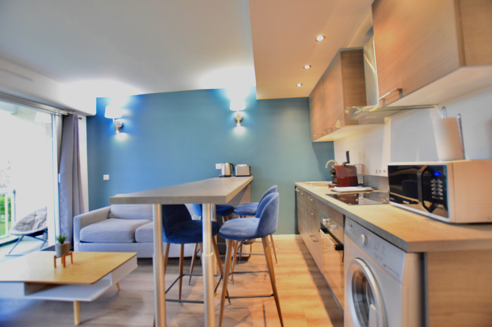 Dans une résidence sécurisée, découvrez cet appartement T3 rénové en 2018, divisé en deux logements (F2 et studio) au 1er étage avec ascenseur.