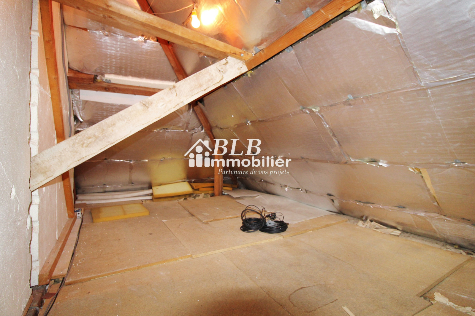 A l'étage : d'une chambre, d'un WC séparé et d'une partie grenier (28,58m² au sol).