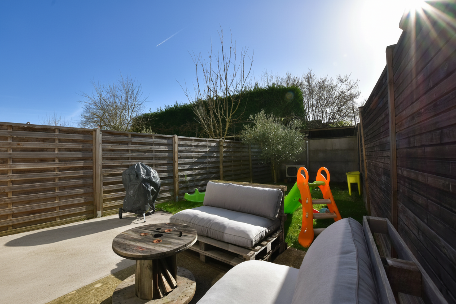 Mitoyenne d’un seul côté, cette maison moderne et parfaitement entretenue bénéficie d’un agréable jardin privatif de 38 m² avec terrasse, idéal pour profiter des beaux jours en famille ou entre amis.