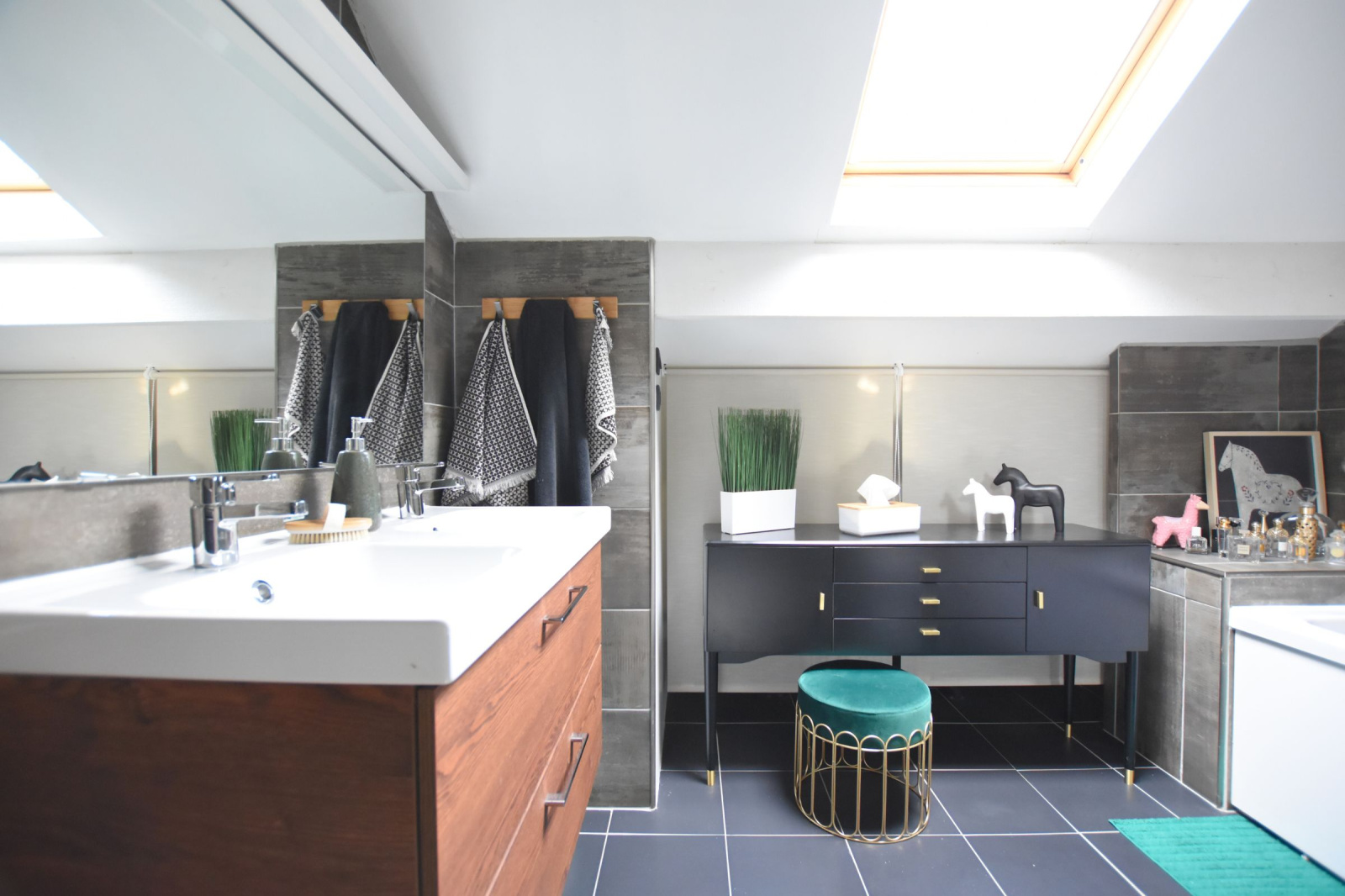 À l’étage, un spacieux palier avec placards vous mène vers : 2 BELLES chambres (11.90 m²/13.84 m²), lumineuses et bien agencées, une salle de bain double vasque, parfaite pour le confort de toute la famille ainsi, qu'un WC.