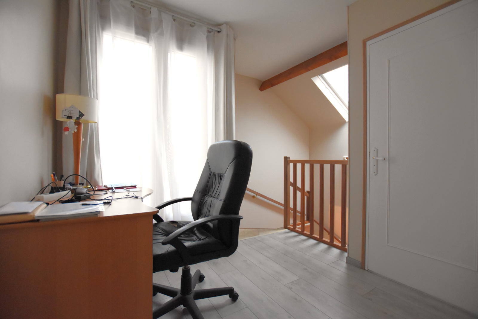 À l’étage, le palier dessert 3 chambres (9 m², 10,68 m² et 11,15 m²), un dressing fonctionnel ainsi qu’une salle d’eau moderne avec WC, rénovée en 2015.