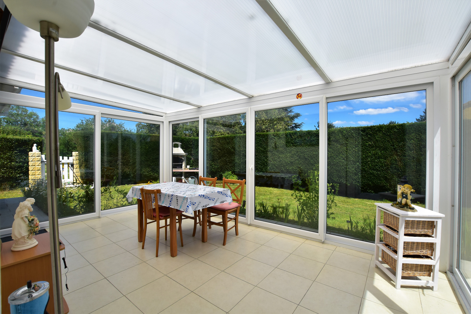 Venez découvrir au Rez-de-chaussée : une entrée avec placard, un séjour DOUBLE LUMINEUX d'environ 37 m2 avec cheminée, donnant accès à une véranda de 15 m2, une cuisine équipée, 2 Chambres (12 m²/12m²), une Salle d'eau ainsi qu'un WC Indépendant.