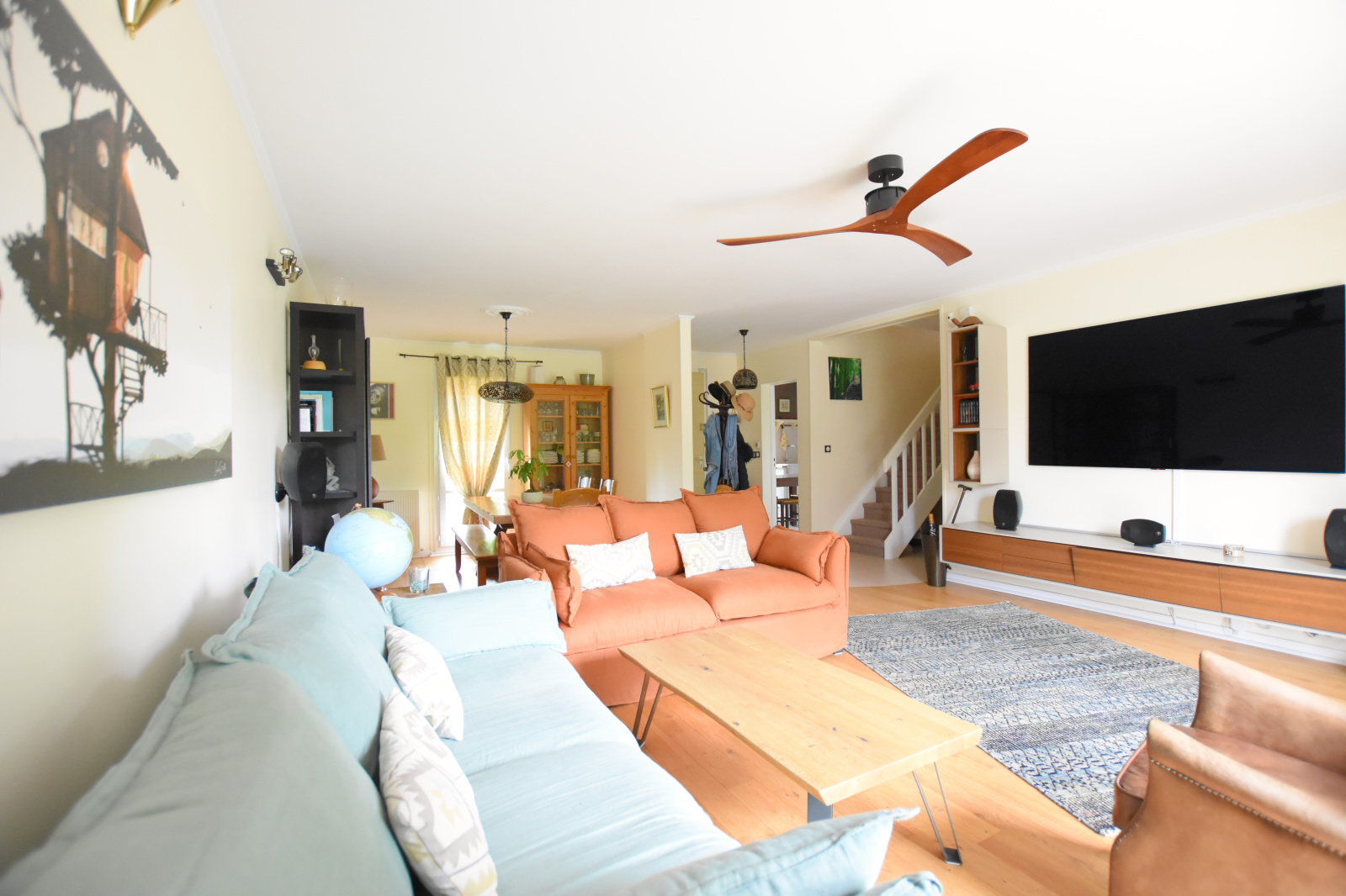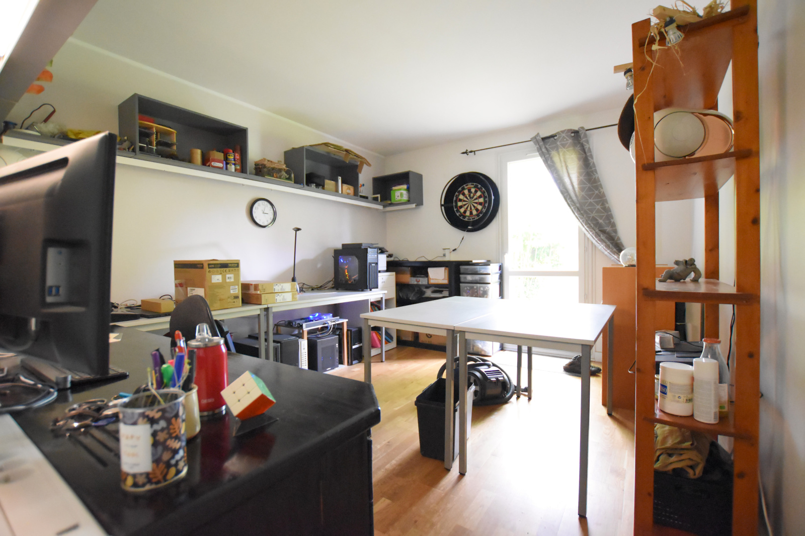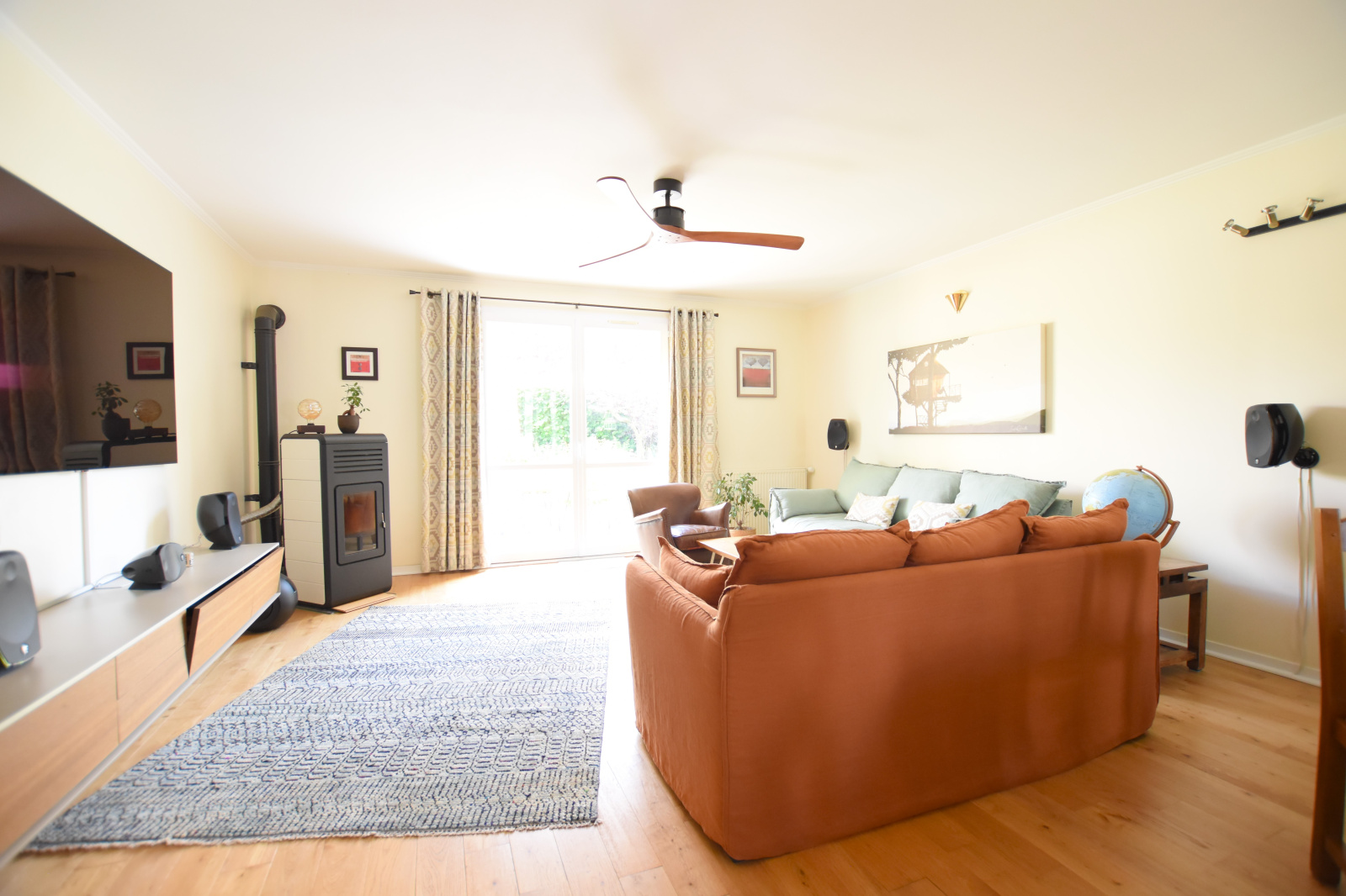 Venez découvrir au Rez-de-chaussée : Une entrée de 5.67 m², un SÉJOUR DOUBLE LUMINEUX de 39 m² avec DOUBLE EXPOSITION et un POËLE à GRANULÉS, une cuisine équipée (11.73 m²), 2 chambres (10.56 m² /14.15 m²), 1 bureau (8.20 m²) pouvant servir de chambre d'appoint, un dégagement desservant une salle d'eau de 4.72 m² et un WC indépendant avec lave-mains
