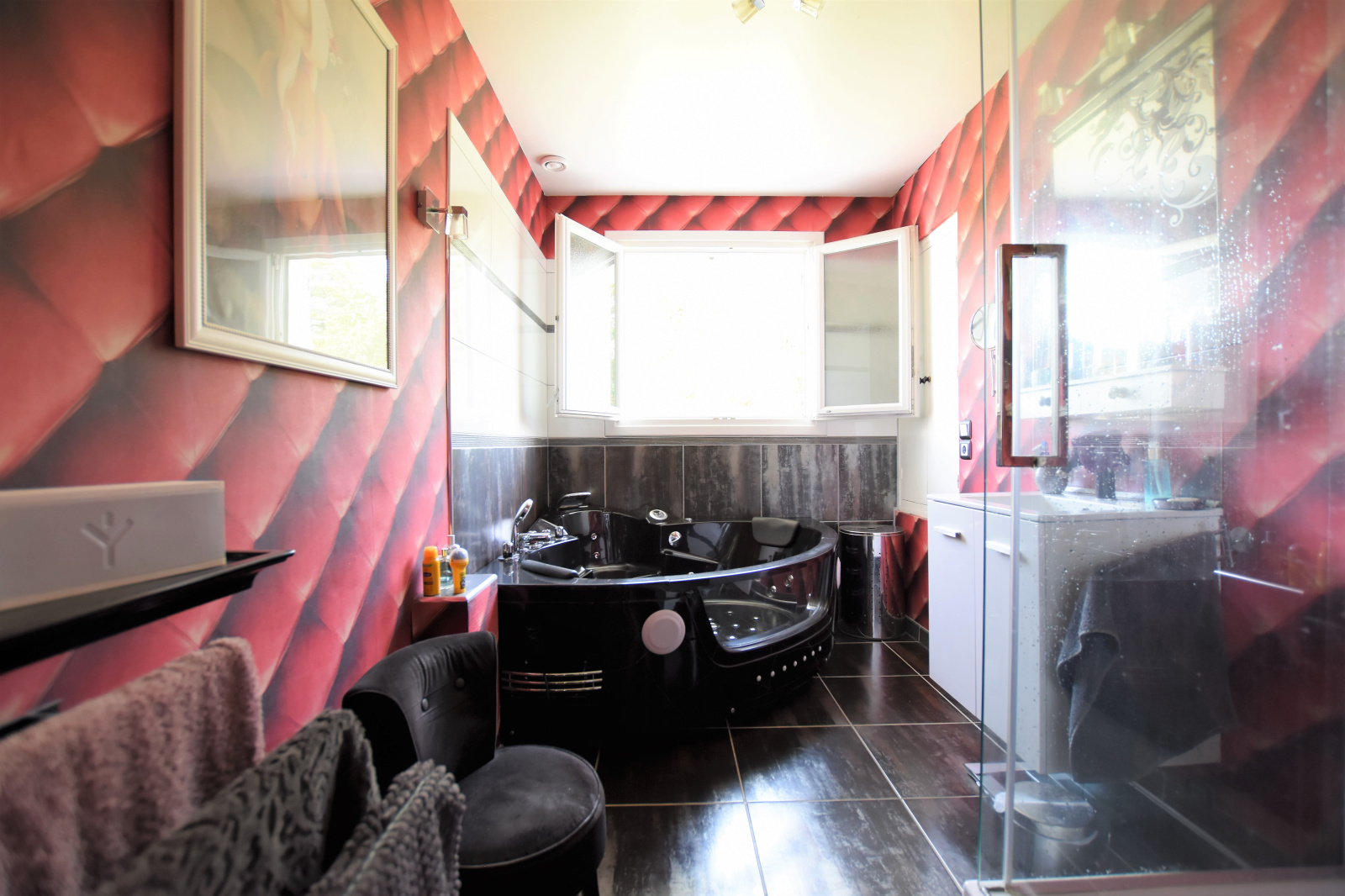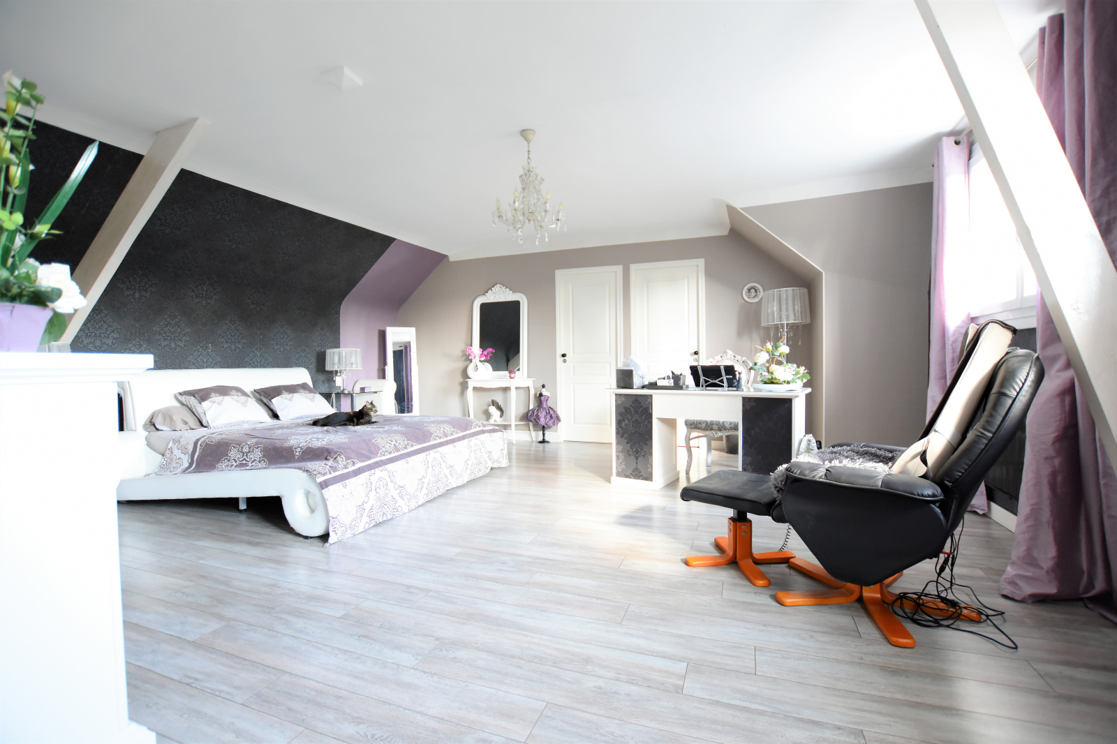 À l'étage, un palier dessert 2 Chambres (18 m² au sol), dont 1 SUITE PARENTALE de 44 m² accompagnés d'une SDB avec baignoire balnéo, un WC et un dressing.