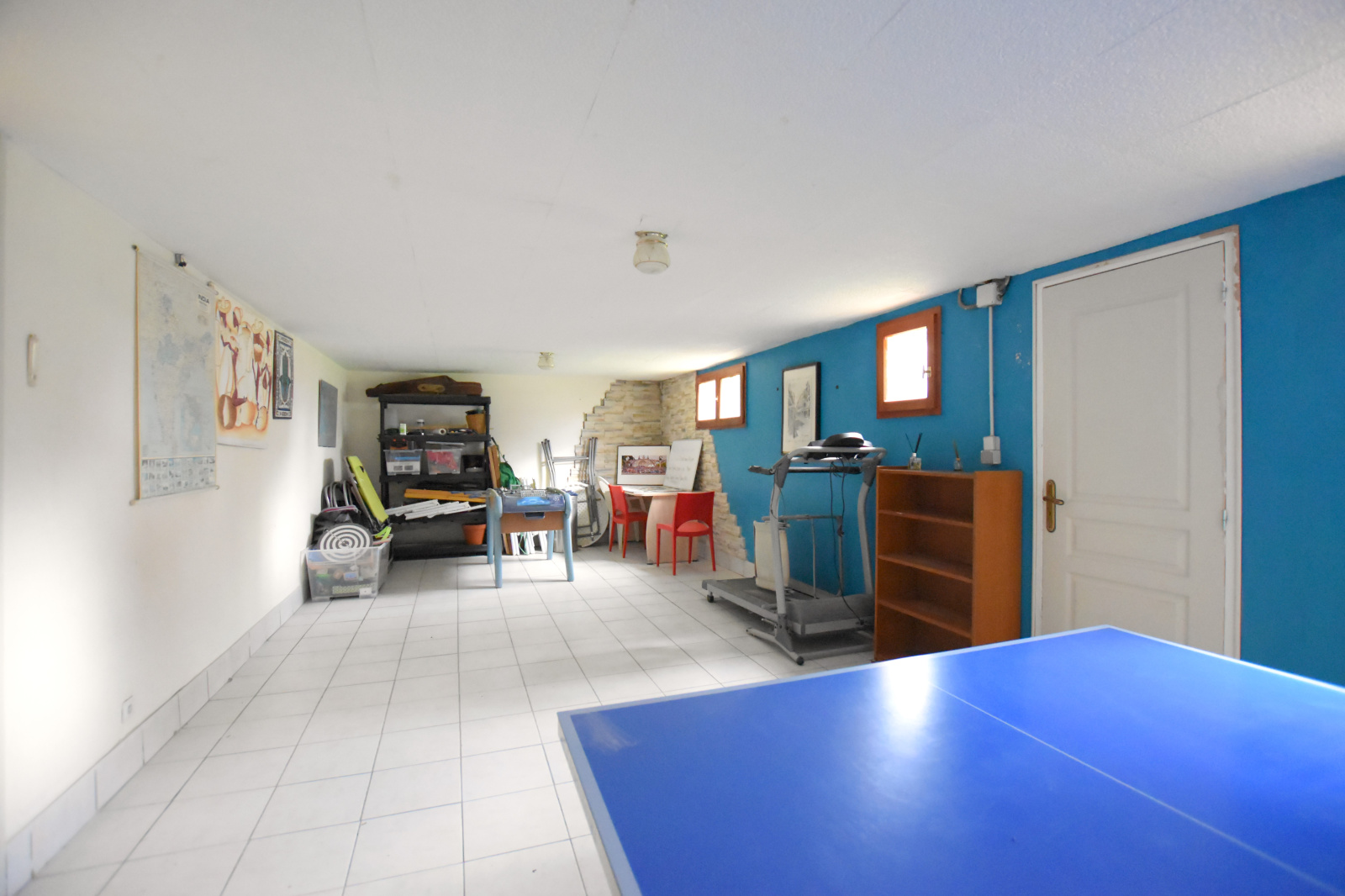 Ce bien dispose également d'un SOUS-SOL TOTAL de plus de 100 m², accessible depuis la maison, comprenant : une chambre avec sa salle d'eau et WC, une buanderie/chaufferie, une pièce de jeux, deux garages, un atelier et une cave.