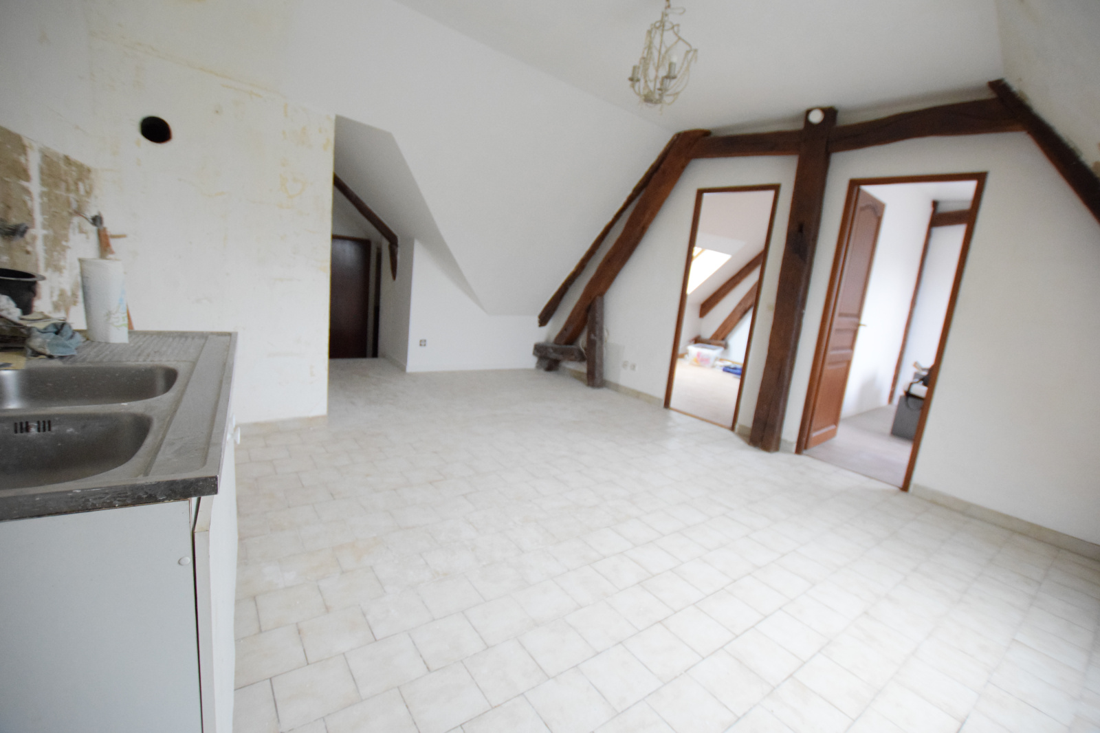 Ablis (78660)Cet appartement, situé au cœur de la ville d'Ablis et à proximité de toutes les commodités, offre une surface au sol de 52 m² (sous combles) et une surface loi Carrez de 34,17 m². Il se trouve dans une petite copropriété à gestion bénévole avec de faibles charges de 30€ par mois. L'appartement se compose d'une entrée avec placard, d'une salle d'eau avec WC, d'un séjour lumineux avec cuisine ouverte, et de deux chambres. Une cave complète ce bien. L'appartement nécessite des travaux de rénovation. La copropriété comprend 5 lots et présente des charges annuelles de 328€, sans aucune procédure en cours.