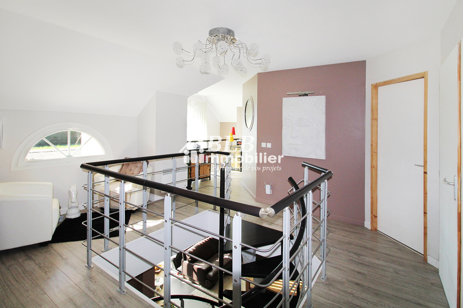 A l'étage : d'un palier / mezzanine pouvant servir de BUREAU, de coin lecture ou autres desservant UNE SUITE PARENTALE avec son dressing et sa salle de bain avec un WC, de 2 chambres et d'une salle de bain avec un WC.